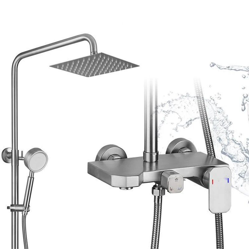 304 Stainless Steel Bathroom Shower Set Household Shower Faucet Wall Mounted Bathtub Faucet Rain Shower Column Bidet Faucet
