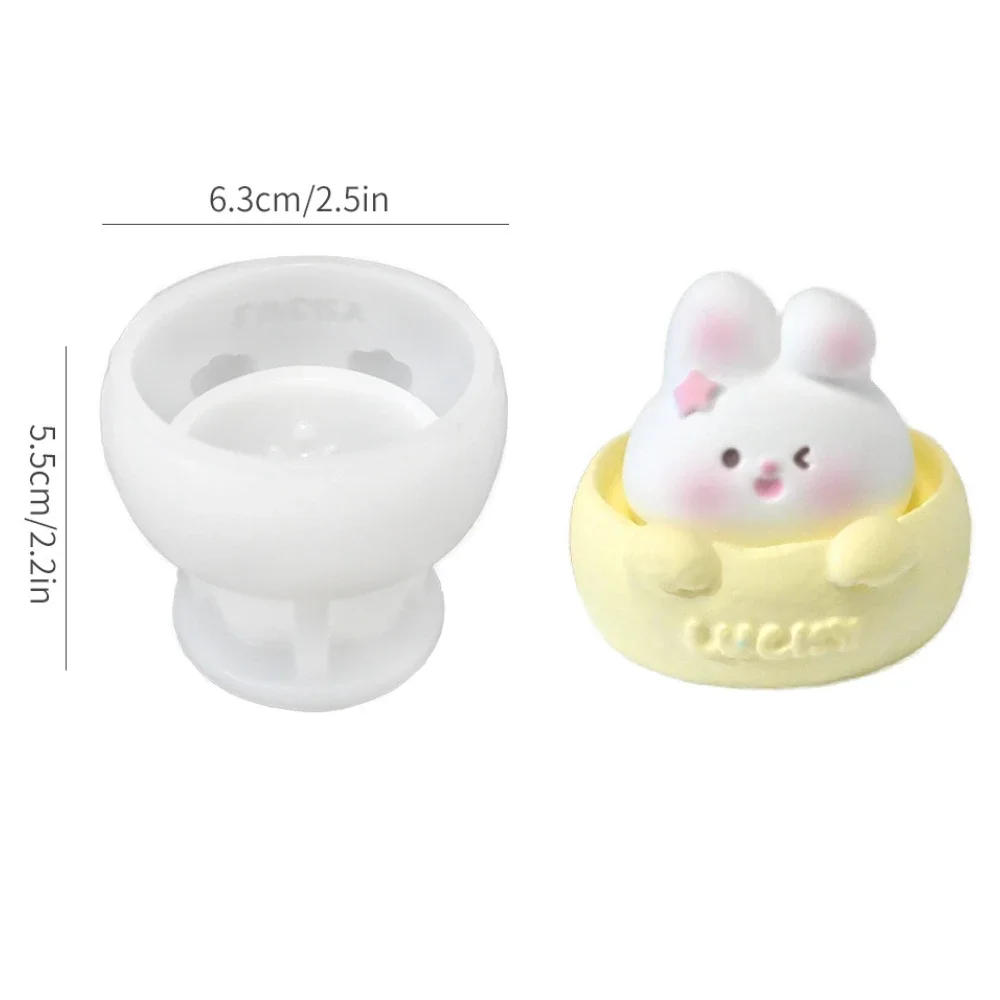 3D Cartoon Cup Smile Bow Rabbit Candle Making Molds Flower Animal Bunny Painting Plaster Soap Silicone Mould Birthday Cake Decor