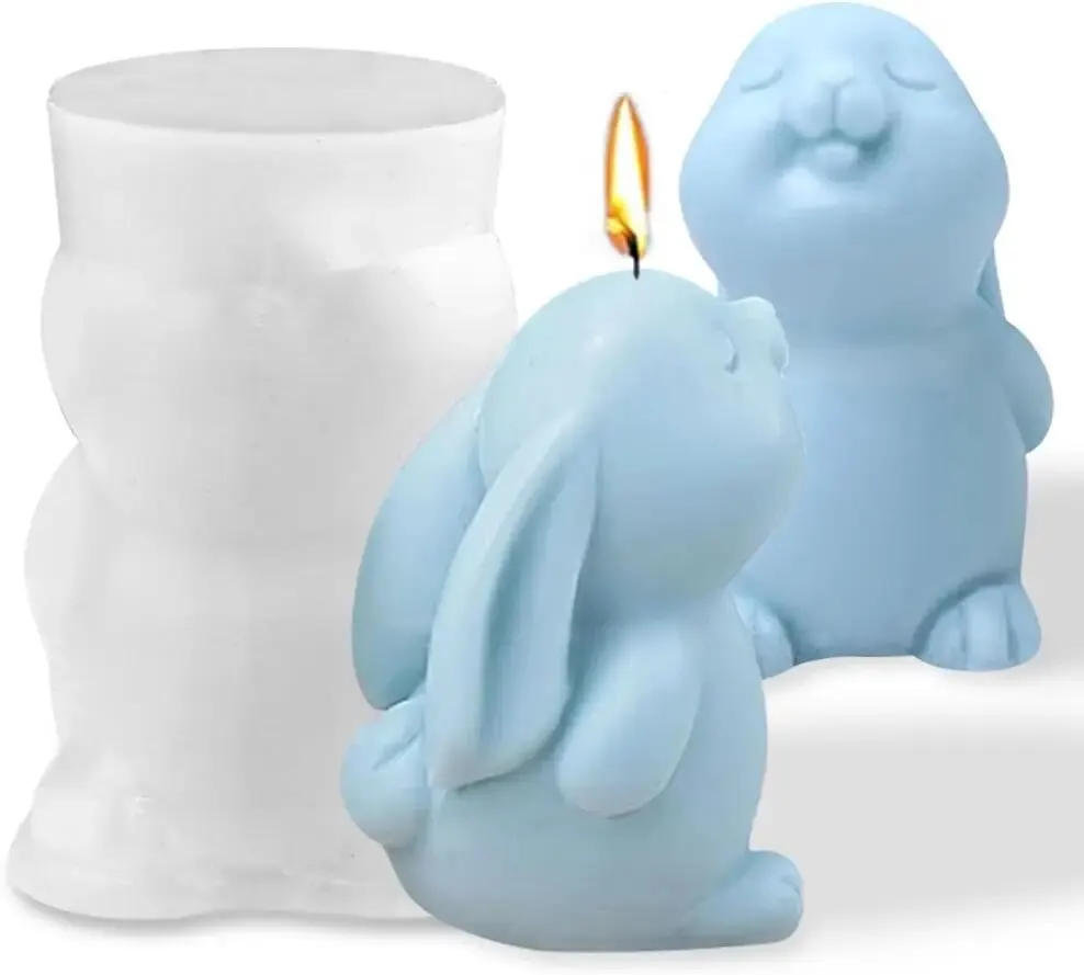 3D Easter Bunny Candle Mold Silicone Mold for Fondant, Soy Wax Candle, Soap, Polymer Clay, Plaster Ornament,DIY Crafts