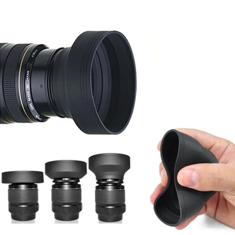 49 52 55 58 62 67 72 77 82mm 3-Stage 3 in1 Collapsible Rubber Foldable Lens Hood for Iconic Brand nikon DSIR Lens camera