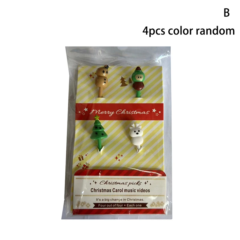4pcs Christmas Creative Cartoon Fruit Fork Set Plastic Small Fork Sweet Mouth Fork Cute Portable Fruit Toothpick Cake Forks