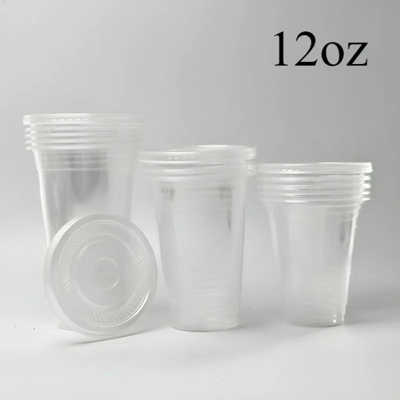 50PCS Disposable Plastic Cups with Lids Plastic Cups for Cold Drinks Coffee Juice Smoothies Birthday Party Supplies