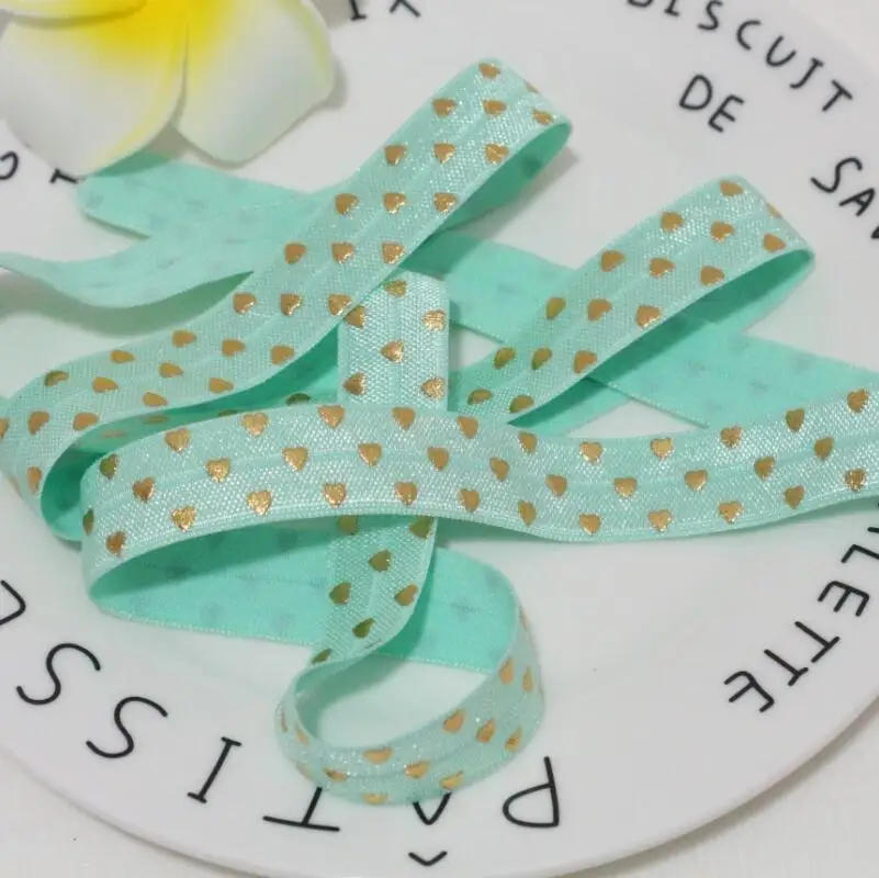 5Yards/lot 5/8'' 16MM Hearts Printed Elastic Rubber Band Fold Over Elastic Foe Ribbon Diy Accessories Crafts