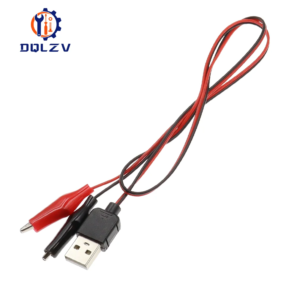 60CM Alligator Test Cilp To USB Male Female Connector Adapter Crocodile Test Clamp Clip Power Cable