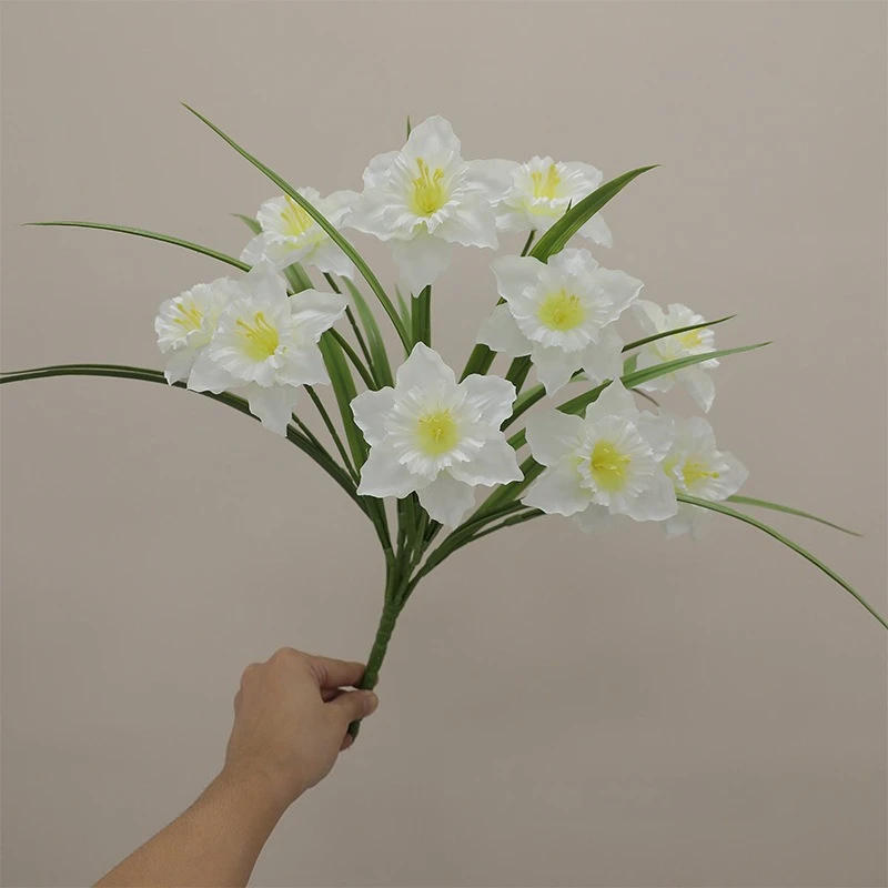 Artificial Flowers Silk Daffodil Bouquet Fake Flower Wedding Decorative White Simulation Narcissus Plant Floral Hall Decoration