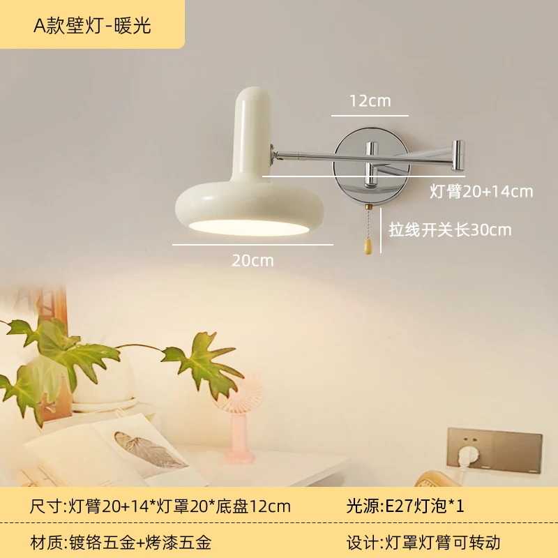 Bauhaus Atmosphere Cream Wind Memphis Wall Lamp LED E27 Telescopic Swing Arm Wall Mounted Staircase Background Bedside Reading