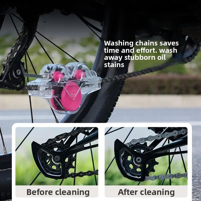 🚴♀️Bike Chain Cleaner | CYLION Chain Frog Washer💥 1 Product Highlights✨CYLION Chain Frog Washer, polished over 3 years, wins 2 patents (Design + Utility Model) – adorable design + stable function! Transparent PC shell + purple brush, sturdy (impact & corrosion resistant) for long-term chain care👍2 Core Functions🔥✅ 360° Full Coverage Cleaning:Fully enclosed soaking & brushing, cleans chains with out lifeless corners Removes stubborn grease 3x faster than ordinary methods, saves detergent♻️ ✅ No Chain Removal:Hook & buckle design, easy to install on derailleur pulley Clean while riding/rotating crank – no disassembly, save time & effort🚴 ✅ Universal Fit:Works for mountain/road bikes Keeps chains clean from day by day commutes to off-road rides, extends chain existence for smoother cycling✨3 Product Specs📏 Name: Chain Frog Washer Material: PC (Impact & Corrosion Resistant) Brand: CYLION Color: Transparent Shell + Pink Brush Size: 136x75x32mm Accessories: Metal Hook, Screwdriver, Screw Set four How to Use👀 Install & tighten the hook Hang hook on rear derailleur pulley Align metallic gear, clamp the chain Add detergent, rotate crank/ride – done! 5 Before & After🆚Dirty chains turn “new” – grease, dust disappear! Perfect for daily maintenance/long rides Keep clothing clean & rides smooth~6 Why Choose Us❓ Patented Design✨:3-year R&D, 2 patents – stylish & life like Efficient & Easy🔥:No chain removal, 10 minutes to clean Durable💪:PC material resists impact/corrosion, long-lasting Euro/North America Bestseller💥:Fits EU/NA riding habits, depended on by overseas cyclists 💡For EU/NA riders:Perfect for European/US cycling types – clear chains, safe rides, and not more soiled clothes! Grab yours now🔥