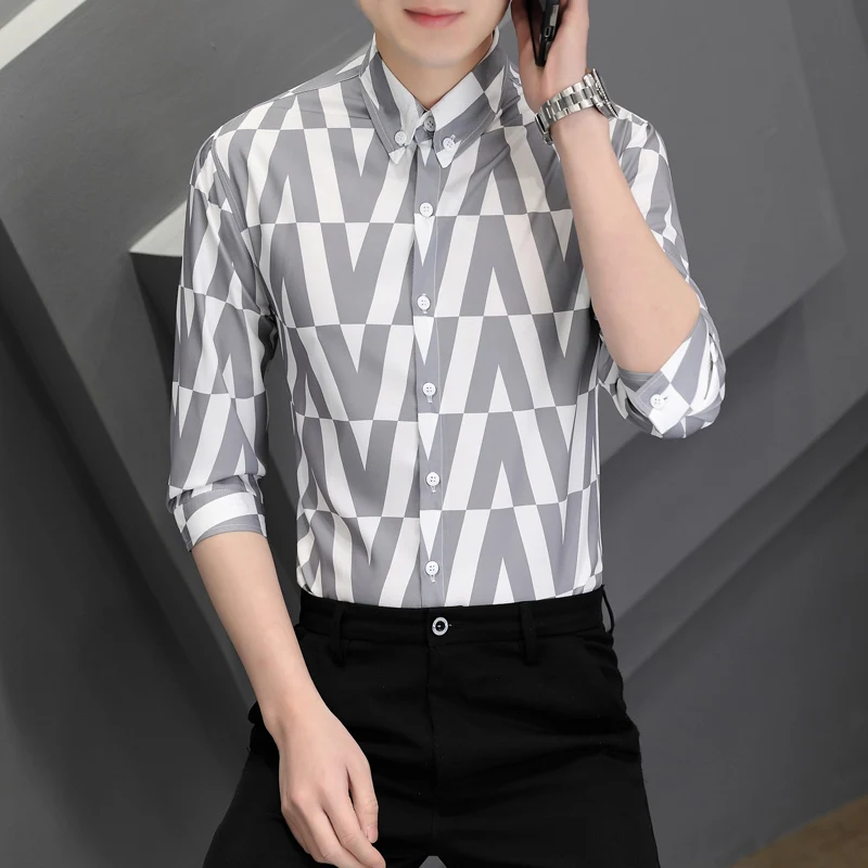 Brand Plaid Shirts Men Fashion Quarter sleeve Loose Casual Shirts 2024 Spring Summer Streetwear Social Party Tuxedo Blouse M-4XL