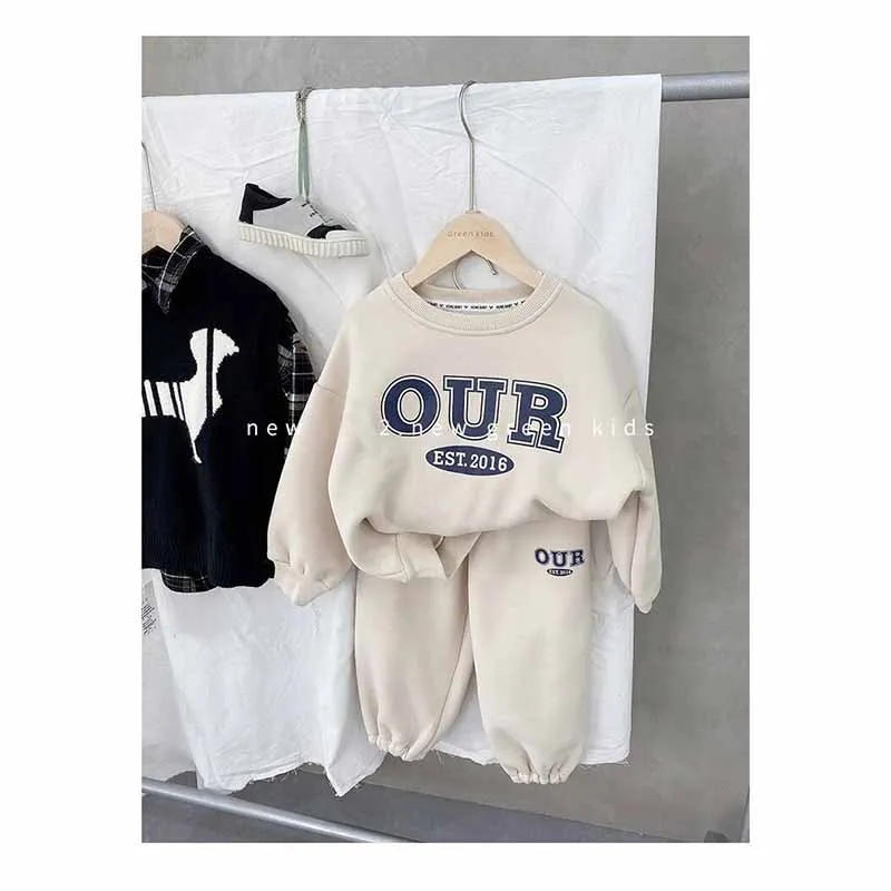 Children's Round Neck Sweater Sets Boys Warm Casual Loose 2Pcs Autumn Winter New Children's Long-Sleeved Letter Sports Suit 2-6Y