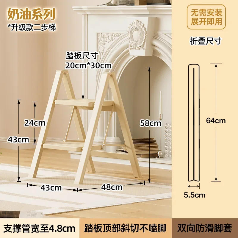 Cream Wind Home Folding Ladder Small Multi-functional Lightweight Ladder Chair Decorative Flower Frame Ladder Home Furniture