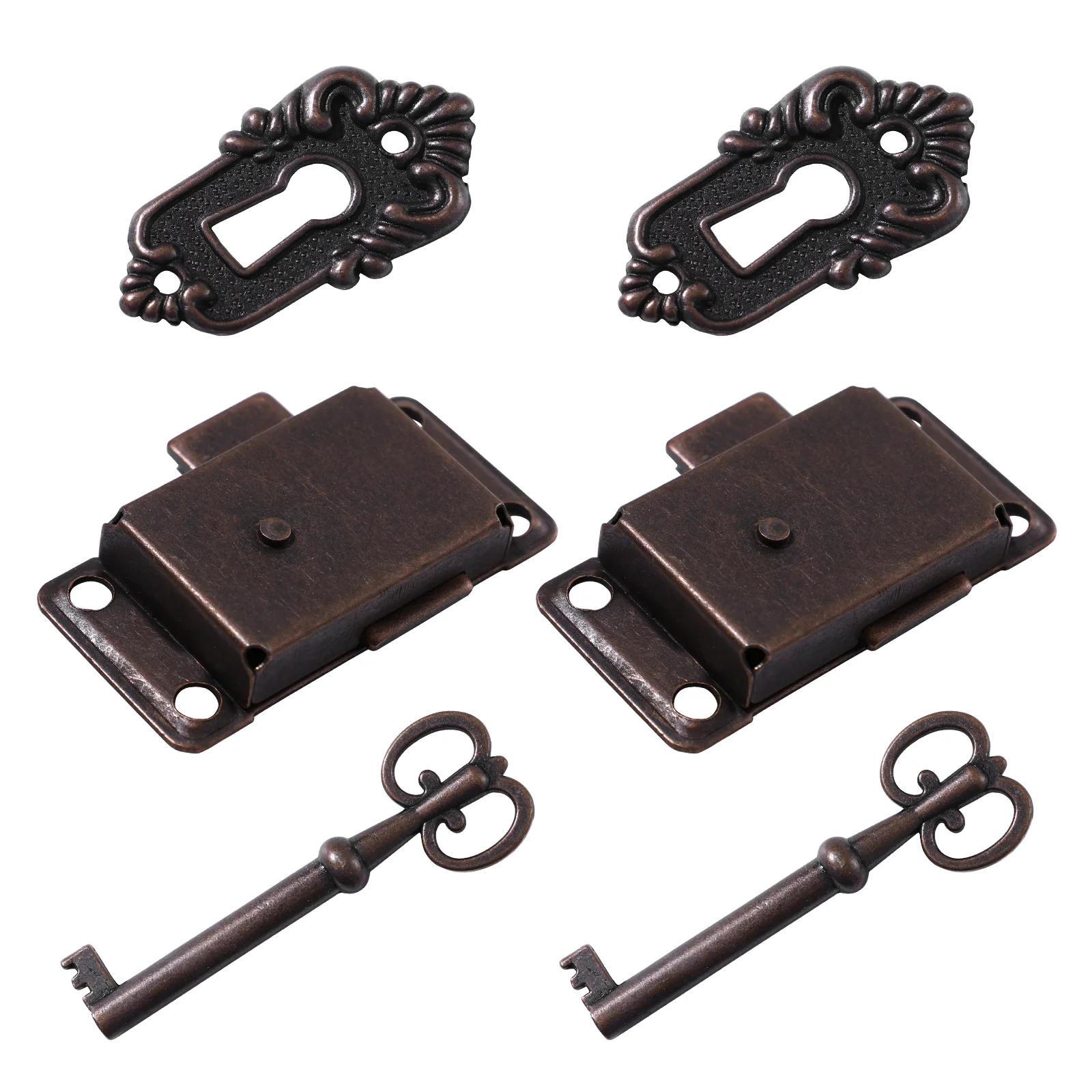 Cupboard Locks with Key Storage Cabinet Jewelry Boxes Furniture Toolbox Latches Decorative Vintage Lockers Kit