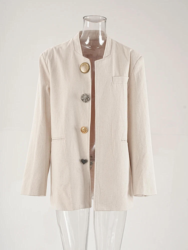 DEAT Fashion Women's Blazer Notched Collar Loose Fit Personalized Button Long Slevees Suit Jackets Autumn 2025 New Tide CPG1920