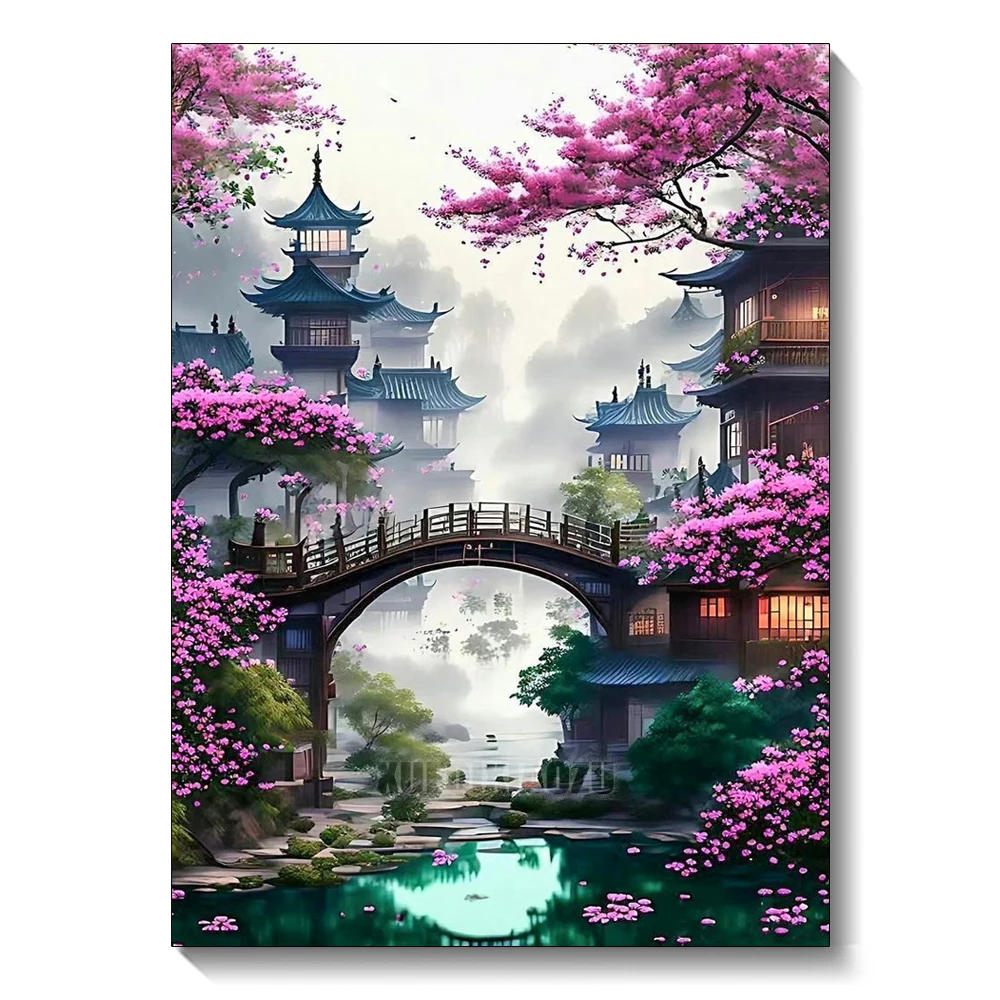 DIY Architecture Scenery Pattern Diamond Painting Set Mosaic Craft Wall Art Room Decoration Suitable for Adults Kids Beginners