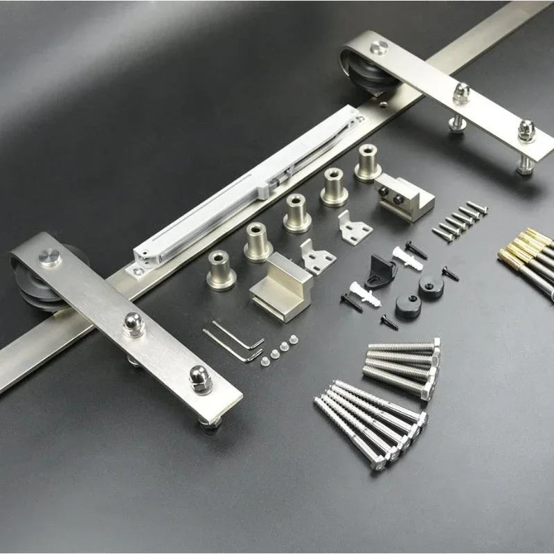 DIYHD 5.5FT Brushed Sliding Barn Door Hardware Two-Side Mechanism, Soft Close kit