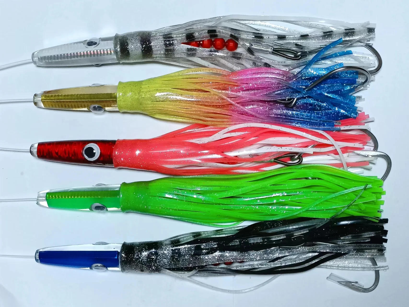 Drag Fishing Resin Fish, Stainless Steel, No.8 Hook, 5 Pack, 140g,2 m Long, pulling Force 350 lbs, tuna, Swordfish