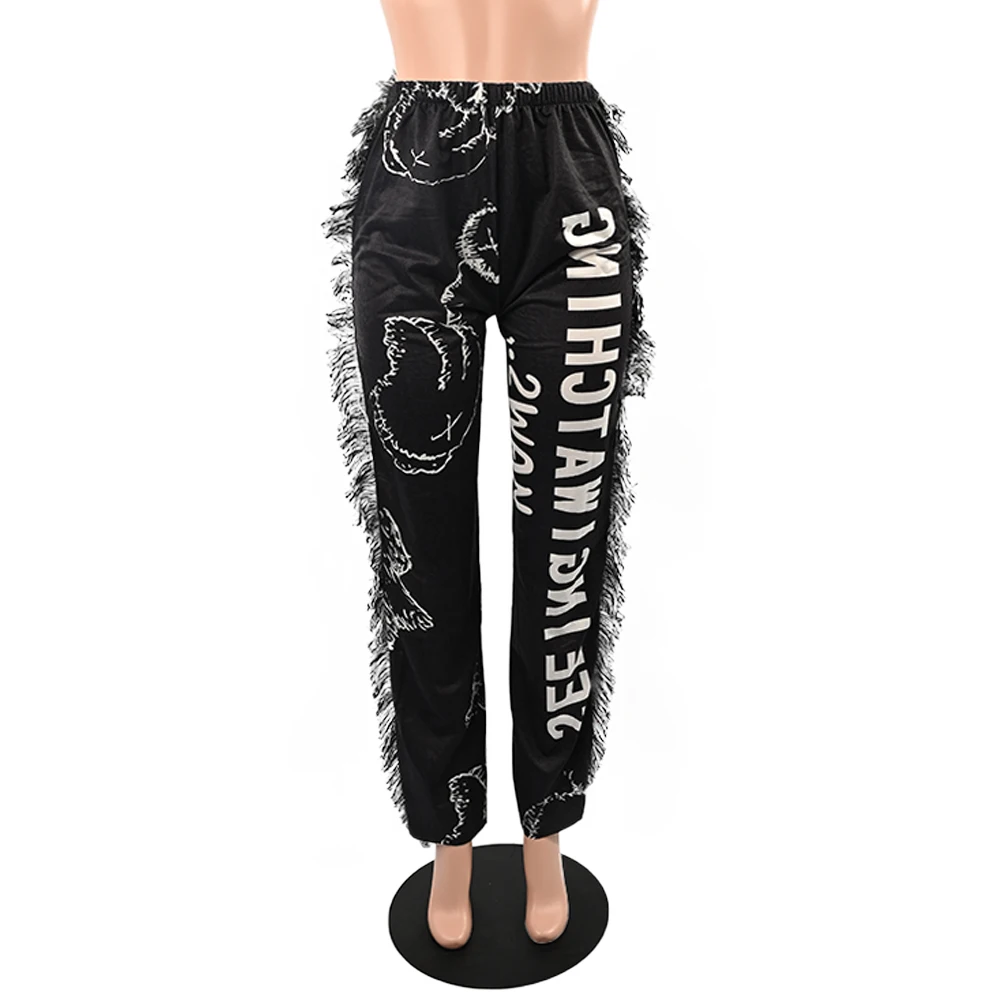 Echoine Women Print Side Tassel Autumn Pants High Waist Activewear Loose Trousers Fashion Sporty y2k Streetwear joggers Pants