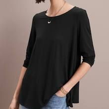 EILEEN FISHER Fine TENCEL-Jersey Jewel-Neck Top Petite - PM(10-12) - Black