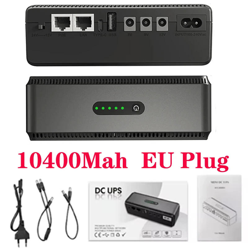 EU Plug DC UPS Battery Backup 10400mAh 5V 9V 12V 2A 15V 24V 1A Output Uninterruptible Power Supply 85‑265V UPS Battery Backup