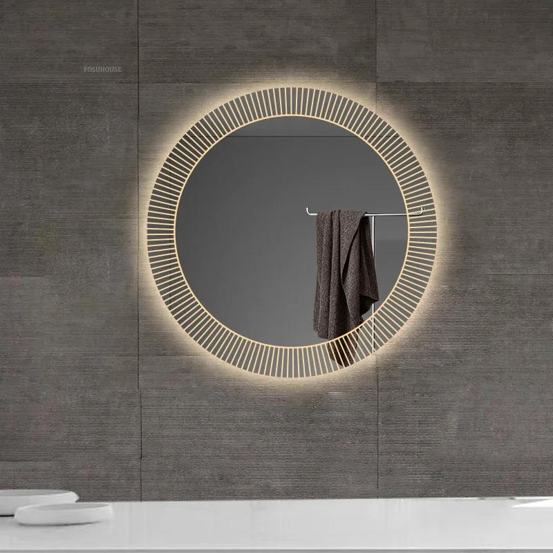 European Style Smart Bath Mirrors Wall Mounted Toilet Round Mirrors Home Bathroom Led Luminous Dressing Mirror with Touch Screen