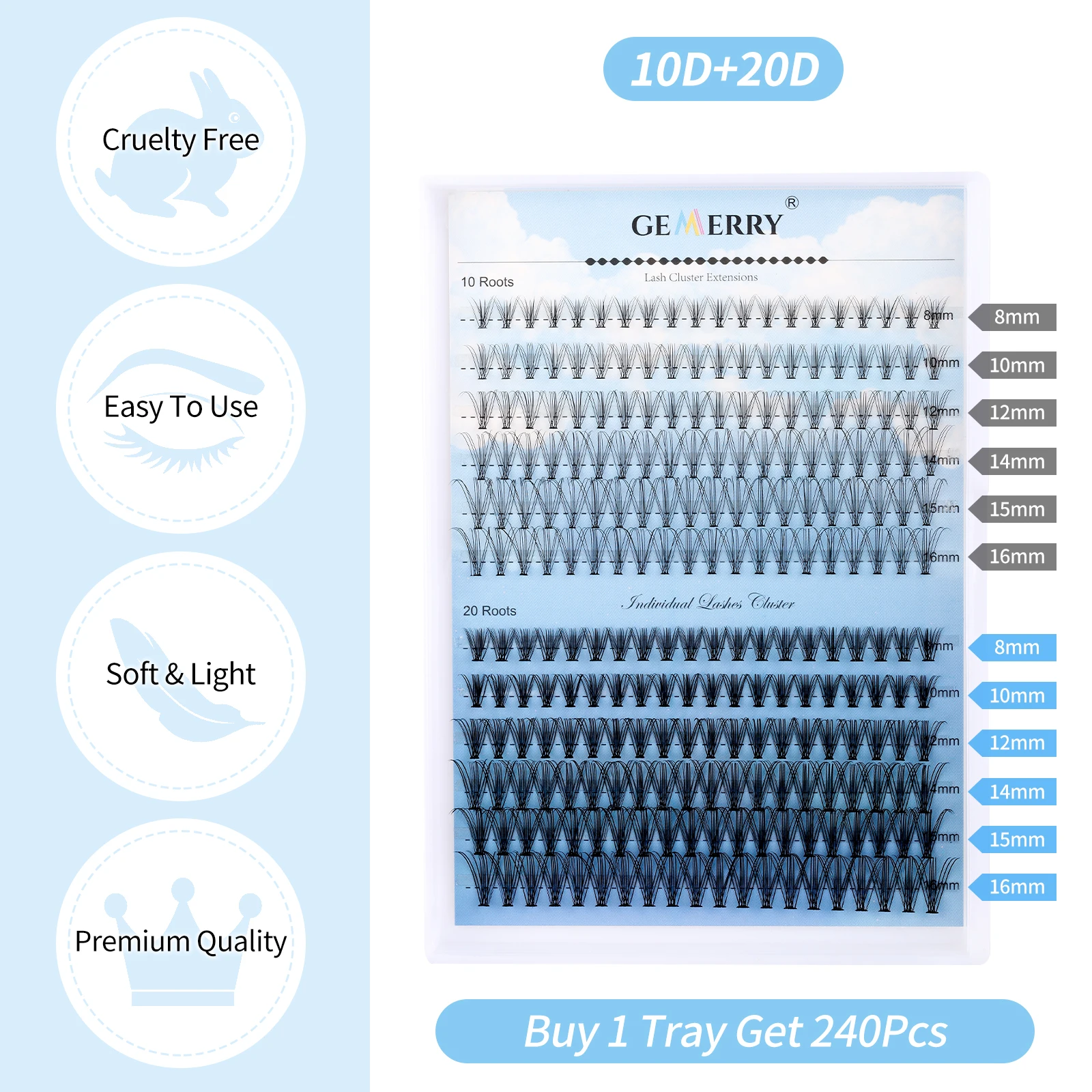 False eyelashes 30P 40P DIY Clusters Makeup Gemerry lashes Russia High Quality Eye Lashes Soft Natural Lashes