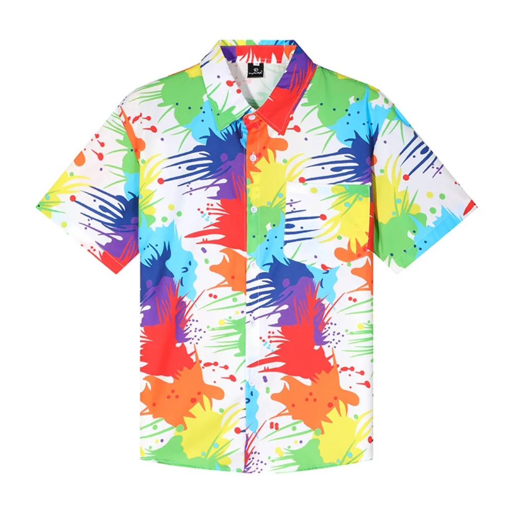 Fashion V-neck Short Sleeve Floral Shirts Hawaii Loose Flower Blouse Women Bohemia Style Colorful Beach Shirts Beachwear