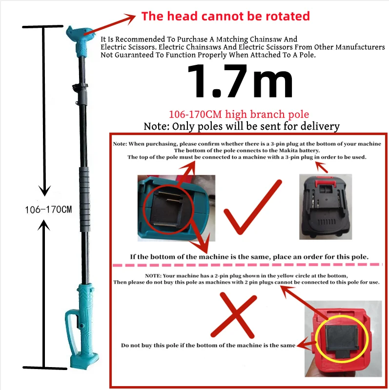 Garden Power Tool Accessories Telescopic Extension And Segmented Rods For 3-Pin Makita Connector Chainsaws And Electric Shears