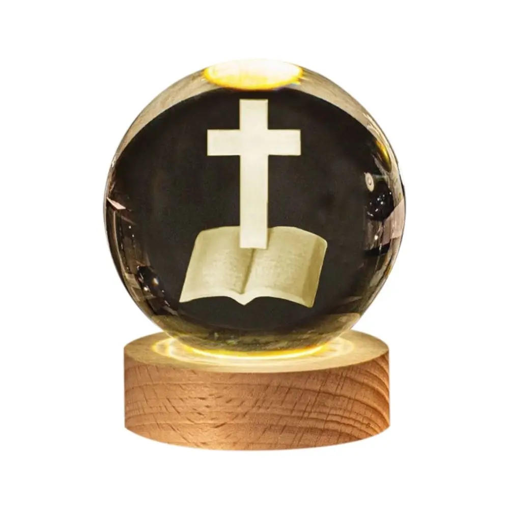Handicraft USB Light Wooden Crystals Glass Ball LED Display Stand 3D Night Light Church Event Souvenir USB Light Handicraft