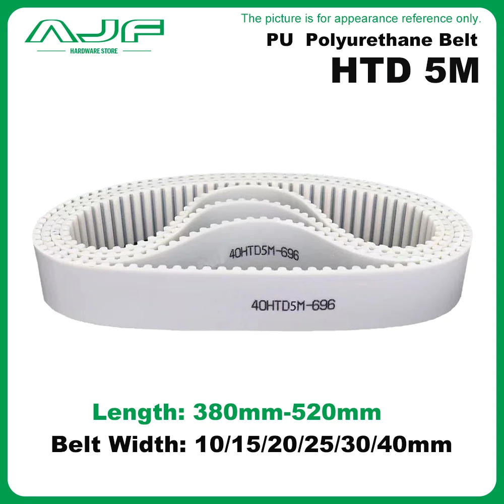 HTD 5M PU Timing Belt Length 380mm~520mm Width 10/15/20/25/30/40mm 5M White Polyurethane Synchronous Belt Closed Loop Gear Belt