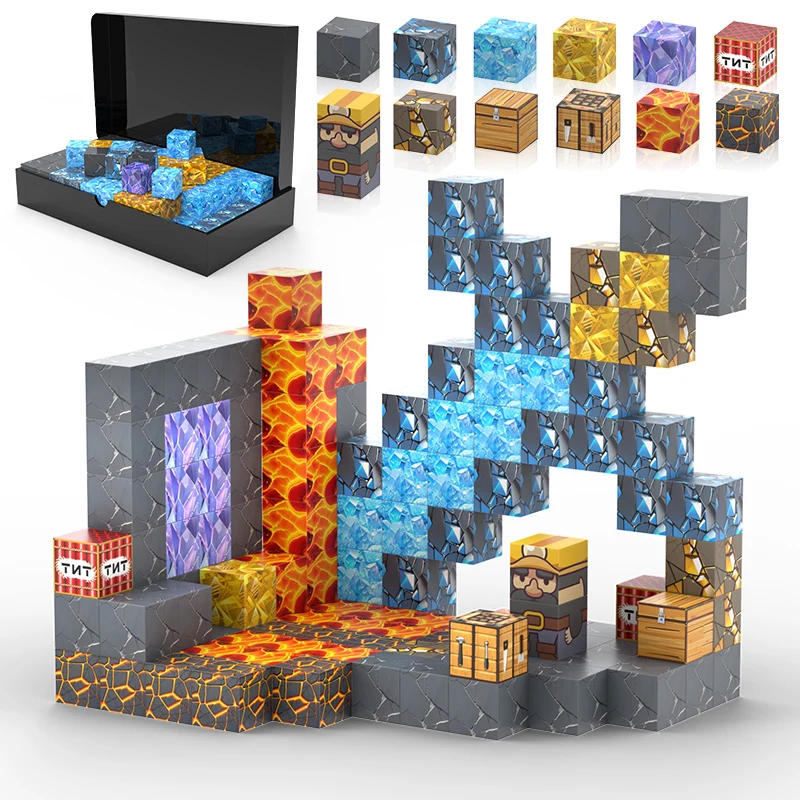 Los bloques de construcción magnéticos Minecraft construyen mi versión mundial de imanes, picos y juguetes infantiles de imanes