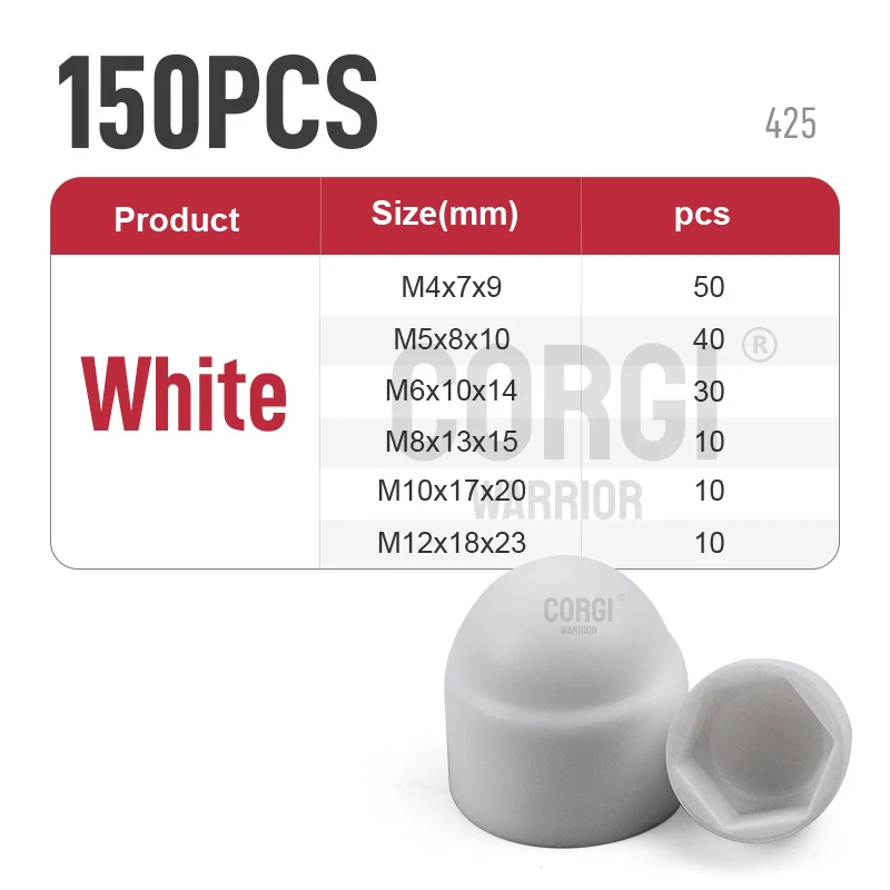 M4 M5 M6 M8 M10 M12 Black White Bolt Cover Screw Caps Hex PE Cap Plastic Nut Assortment Kit 150 to 197 Acorn Dome Protection Nut