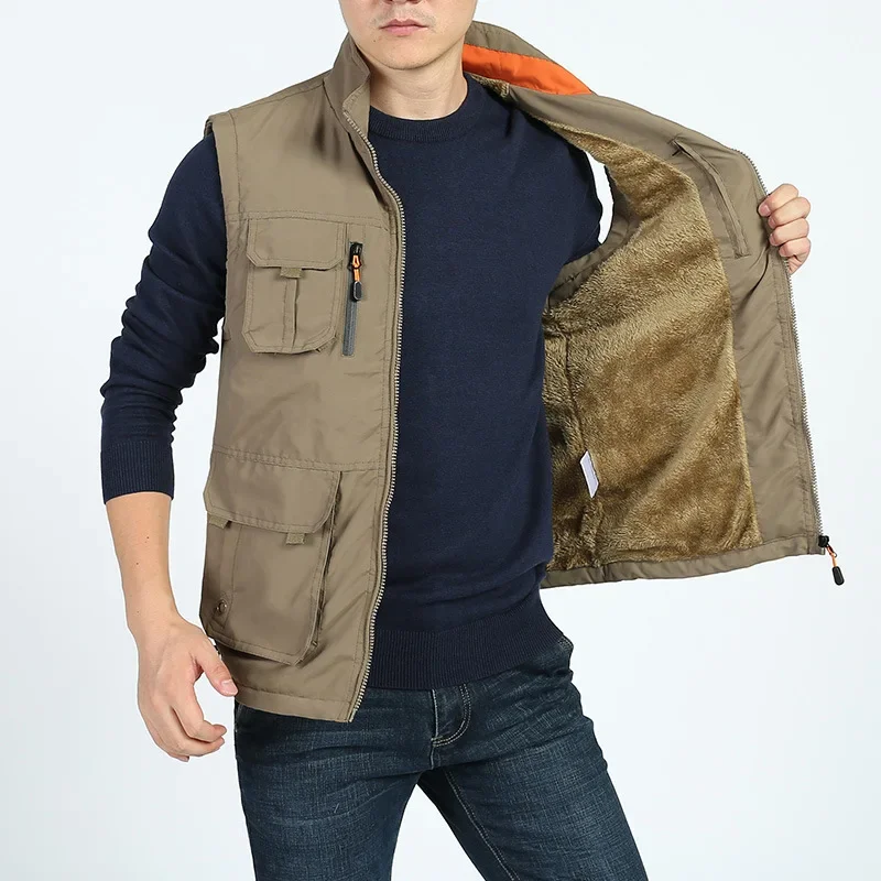 Men Autumn Winter Vest Mens Casual Thicken Fleece Warm Waistcoat Outdoor Multi pocket Military Fishing Hiking Sleeveless Jacket