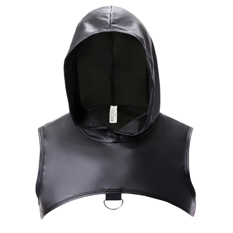 Mens Faux Leather Undershirts Sleeveless Hooded Tops Male Tank Tops Nightclub Stage Clothes Sexy Vests for Men