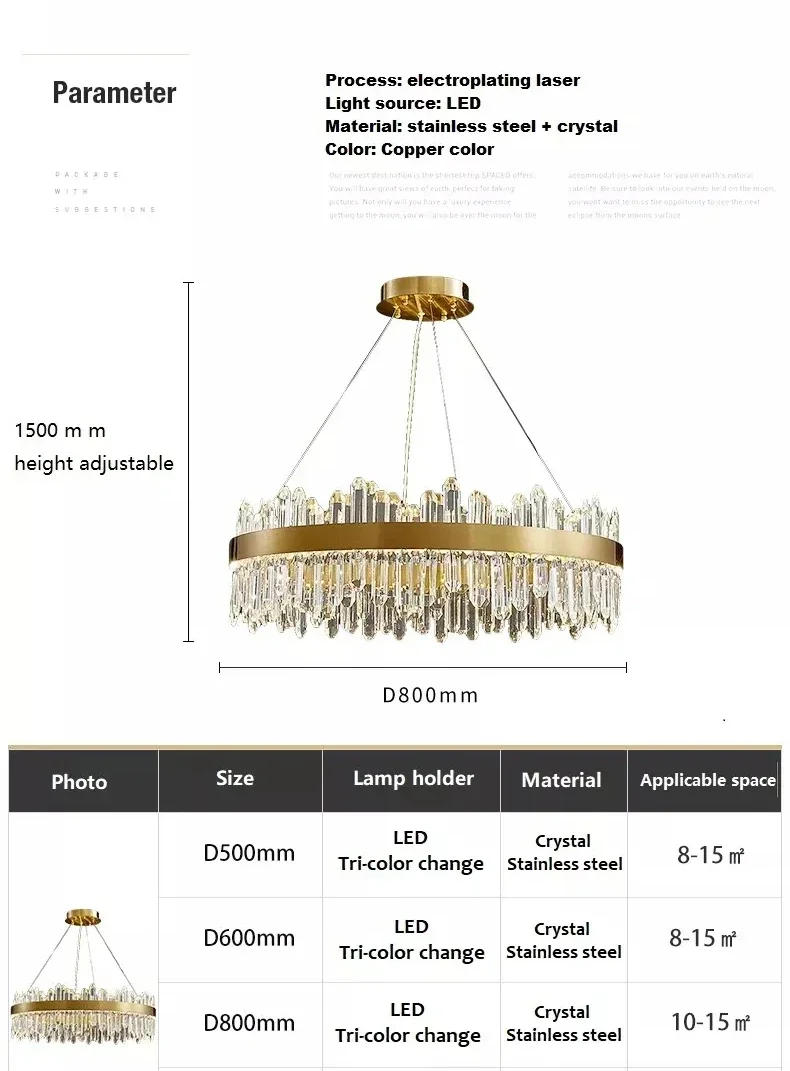 Voltage:AC90-240V/50 60HZMain material: iron,crystal Crystal color: There are two forms of transparent and smoke grey, and the default is with transparent crystal. If you need a mixture of clear crystal and smoke grey, it is best to leave a message or speak with us Process: plating ▲left:smoke gray +transparent crystal ▲right: clear crystal ▲turn off:smoke gray +transparent crystal(Physical sample map) ▲turn on:smoke gray +transparent crystal(Professional photo shoot in studio)