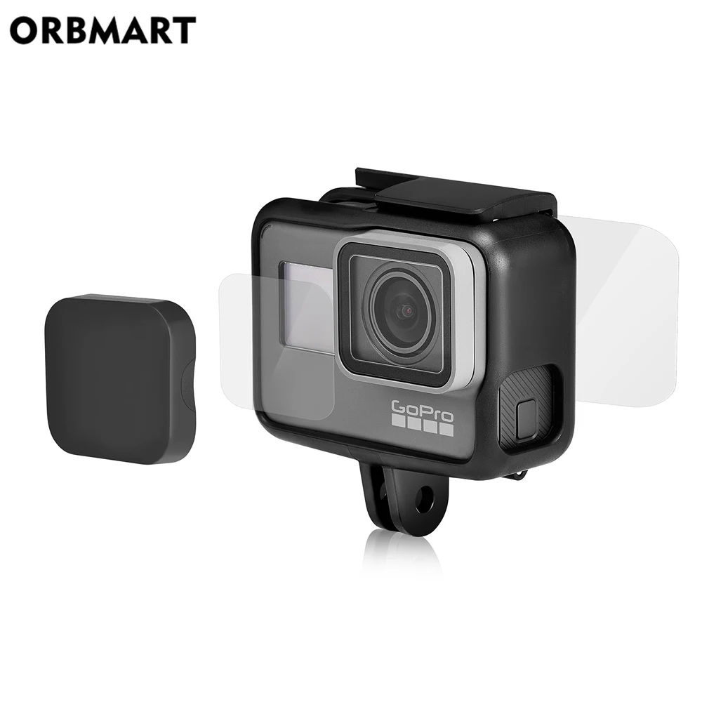 ORBMART Ultra-Clear Tempered Glass Lens Protector + Screen Protector + Hard Lens Cap Cover For GoPro Hero 5 6 7 Black Gopro5