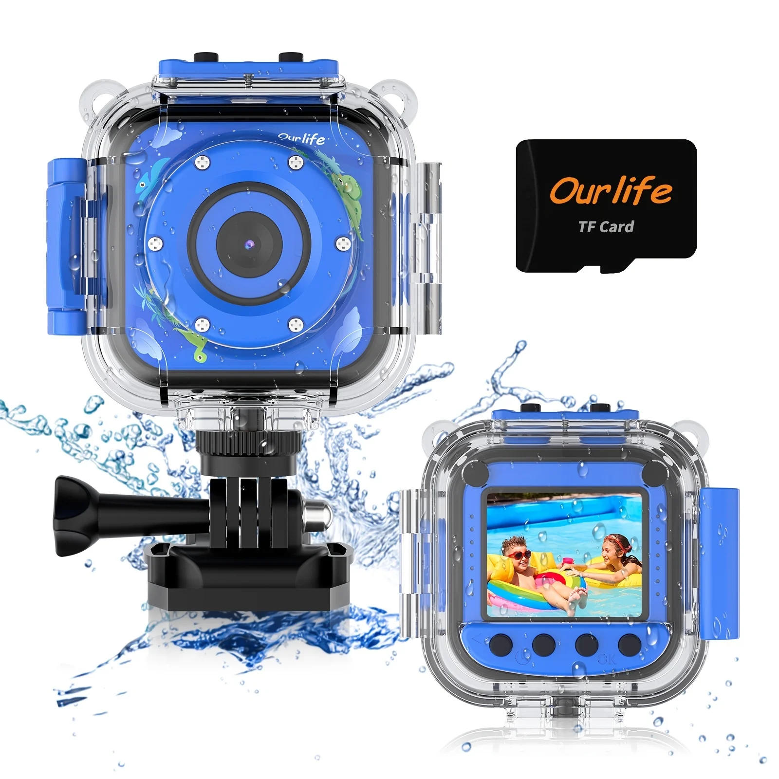 Ourlife Kids Waterproof Camera, Kids Camera for Ages 3-12, Camera for Kids Allows Underwater Use - Camcorder 1.77 Inch Screen with 8GB TF Card