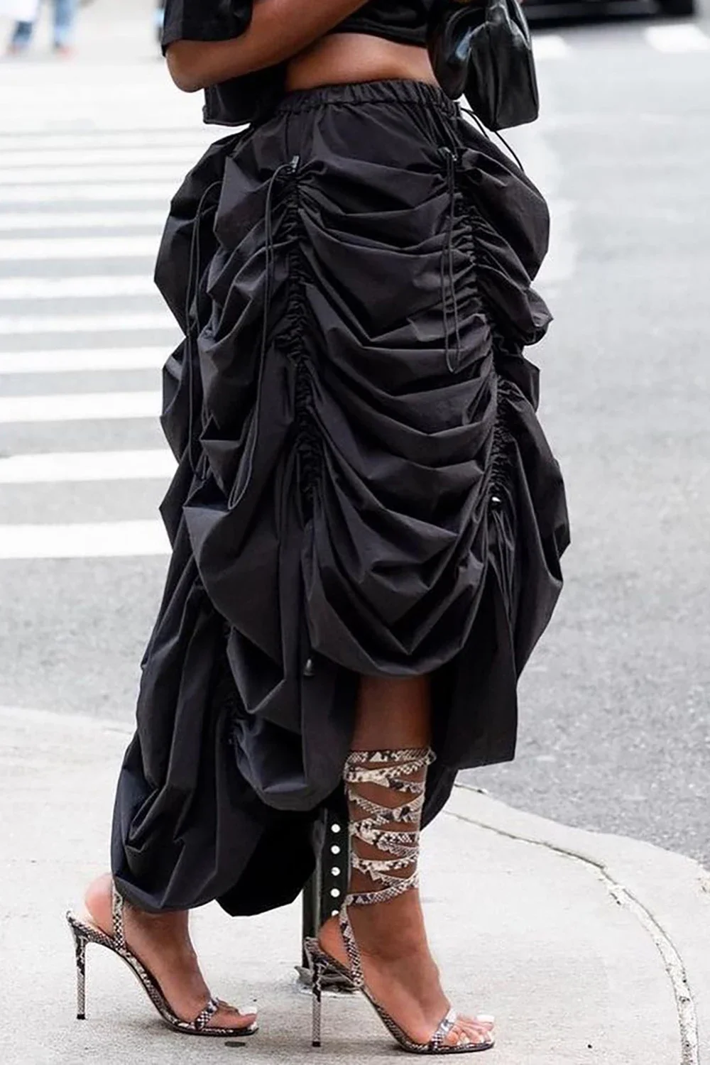 Plus Size Casual Rwo Piece Skirt Set for Women Fold Ruched Vintage Drawstring High Waist Irregular Skirt Vintage Summer