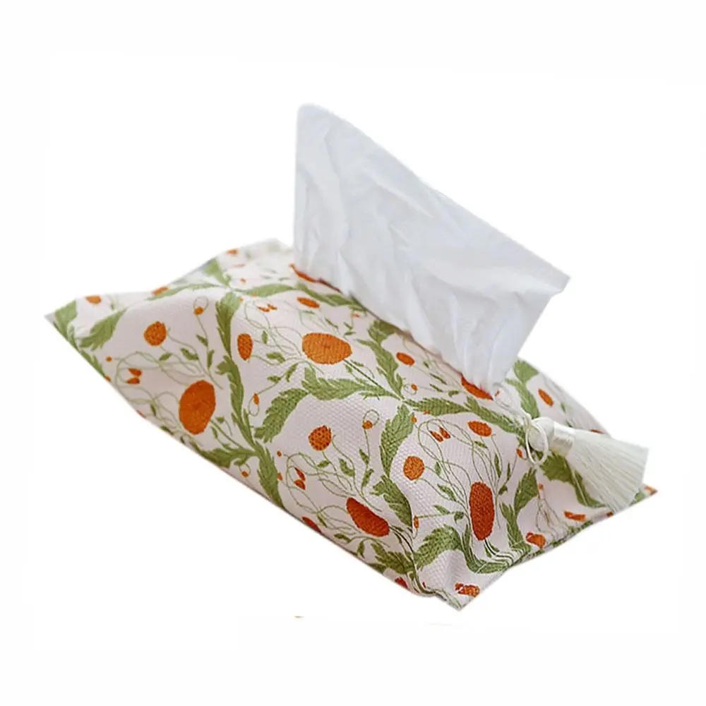 Retro 18x24cm Short Plush Tissue Bag American Floral Tissue Box Holder Decorative Reusable Napkin Paper Box Bathroom