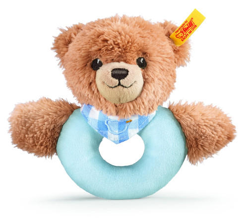 The “Sleep Well” series from legendary German toymaker Steiff brings together European design, premium-grade materials, and meticulous craftsmanship in a special line of luxury toys created with baby in mind. Each handmade plush item has been carefully tested to ensure it meets the most stringent international standards for safety and quality. This delightful grip toy is certain to fascinate and soothe baby for hours. Certified free of harmful substances. Looks great after every laundering. Makes a wonderful shower gift. Featuring the world famous “Button in Ear” trademark, symbol of highest quality. From the company that pioneered soft toys in 1880. Product Details: Material: Made of plush for baby soft skin Size: 5 inches Color: Blue Eyes: Embroidered eyes Ear Tag: Yellow tag with brass-plated "Button in Ear" Joints: Not jointed Sound Device: None Care: Machine washable at 86°F Country of Origin: Made in Tunisia