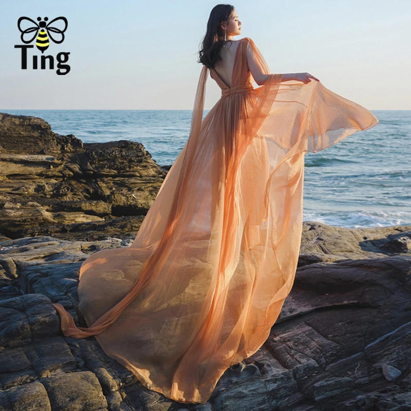 Tingfly Bohemian Floor Length Long Chiffon Summer Dress Luxury Party Dinner Dresses Lady Haut Boho Holiday Beach Vestidos
