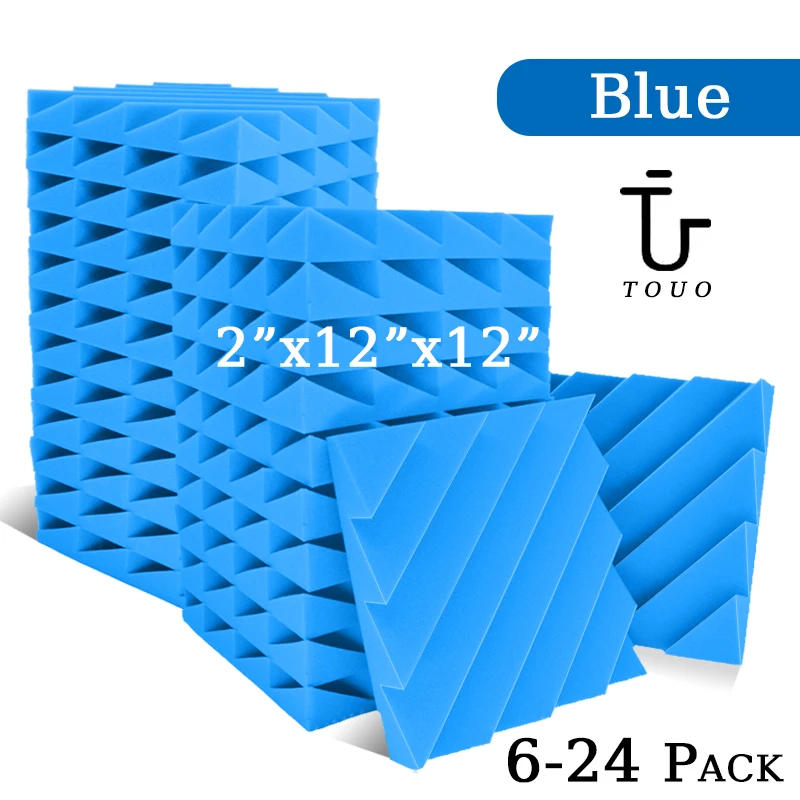 TOUO Studio Sound Absorbing Foam Panels 6-24 Pack Drum Room Absorption Treatment Self Adhesive Sound Absorbing Foam
