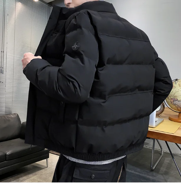 Winter new men's casual padded jacket warm and thick solid color stand collar padded jacket 4XL