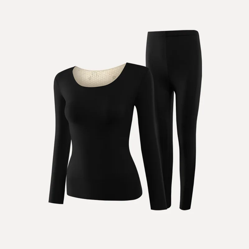 Women's Crewneck Seamless Long Johns Warm Thick Thermal Underwear Top & Bottom 2 Pieces Set for Winter