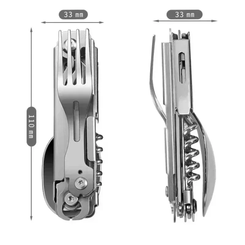 Outdoor Multi-function Stainless Steel Camping Equipment Tableware Knife Fork Spoon Camp Cooking Supplies Portable Folding