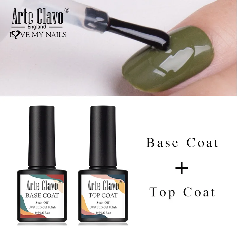 Arte Clavo 8ml Gel Nail Polish Top Base Coat Gellak Primer Varnish Lacquer LED Nail Art Manicure Soak Off Nail Polish Top Base