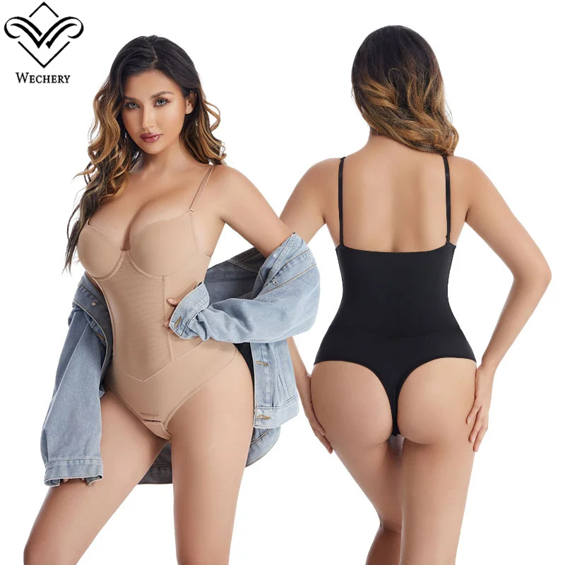 Wechery Bodysuit Shapewear for Women Steel Bone Slimming Flat Belly Vest Sexy Thong Waist Trainer Tummy Control Underwear