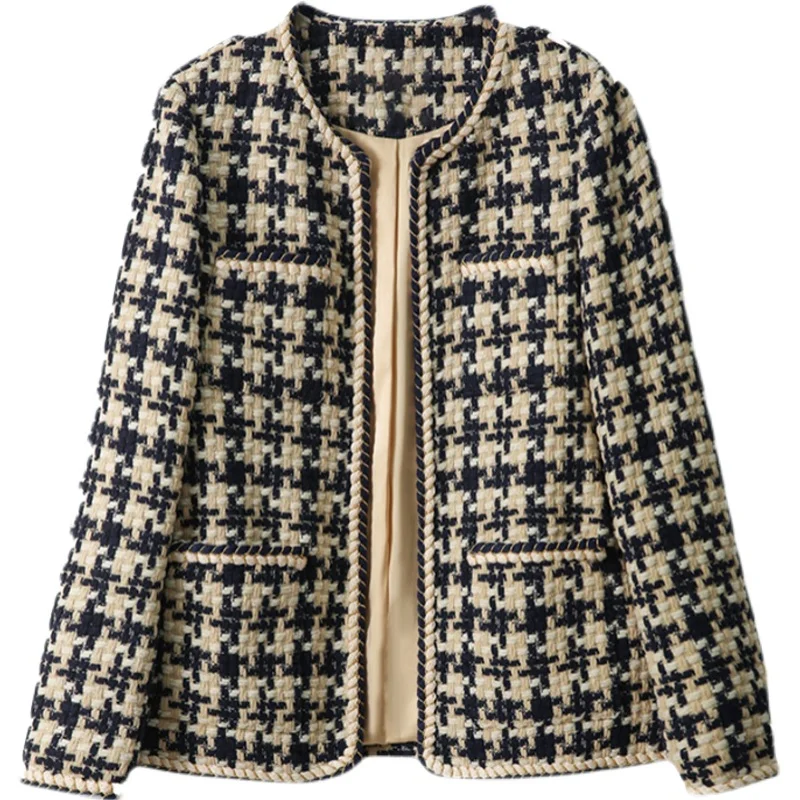 Fashion Socialite Temperament Ladies Tweed Short Jacket Women 2024 Autumn Elegant Slim Long sleeves Female Basic Coat Woman Tops