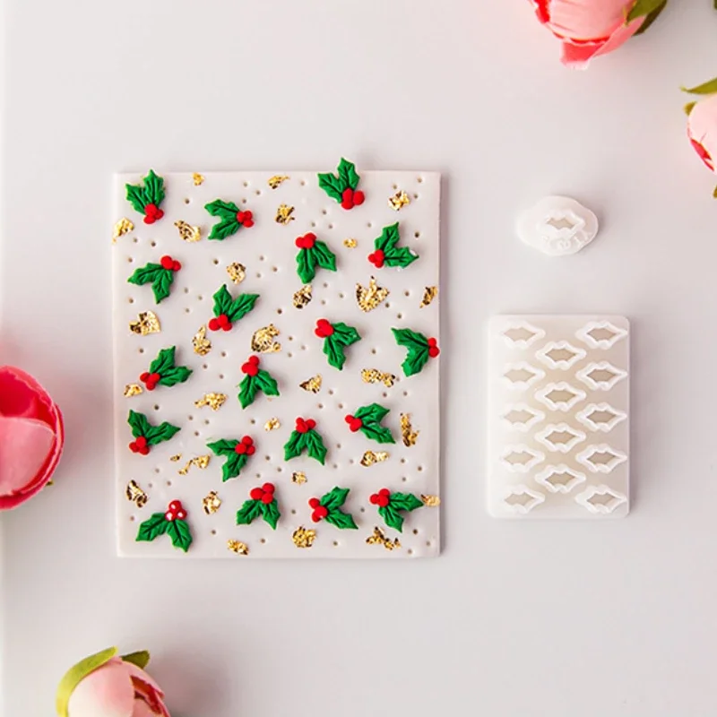 Mini Christmas Holly Leaves Polymer Clay Cutters DIY Christmas Pendant Earring Making Tools Holly Leaf Soft Pottery Clay Molds