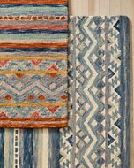 Carmel Hooked Kilim Southwest Wool Rug - Blue Multistripe - 3'6X 5'6