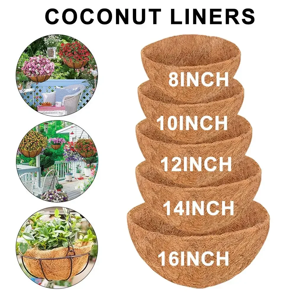 8-18 Inch Hanging Basket Liner Round Coconut Liners for Planters 100% Natural Coco Basket Replacement Outdoor Garden Accessories
