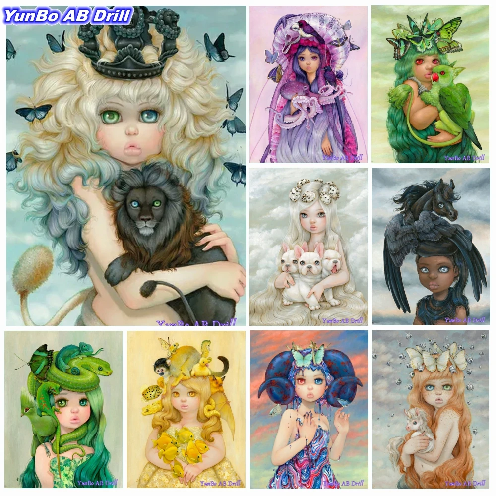 Fantasy Art Cartoon Butterfly Girl AB Drill Diamond Painting Cross Stitch Amazing Animal Snake Bird Mosaic Handmade Home Decor